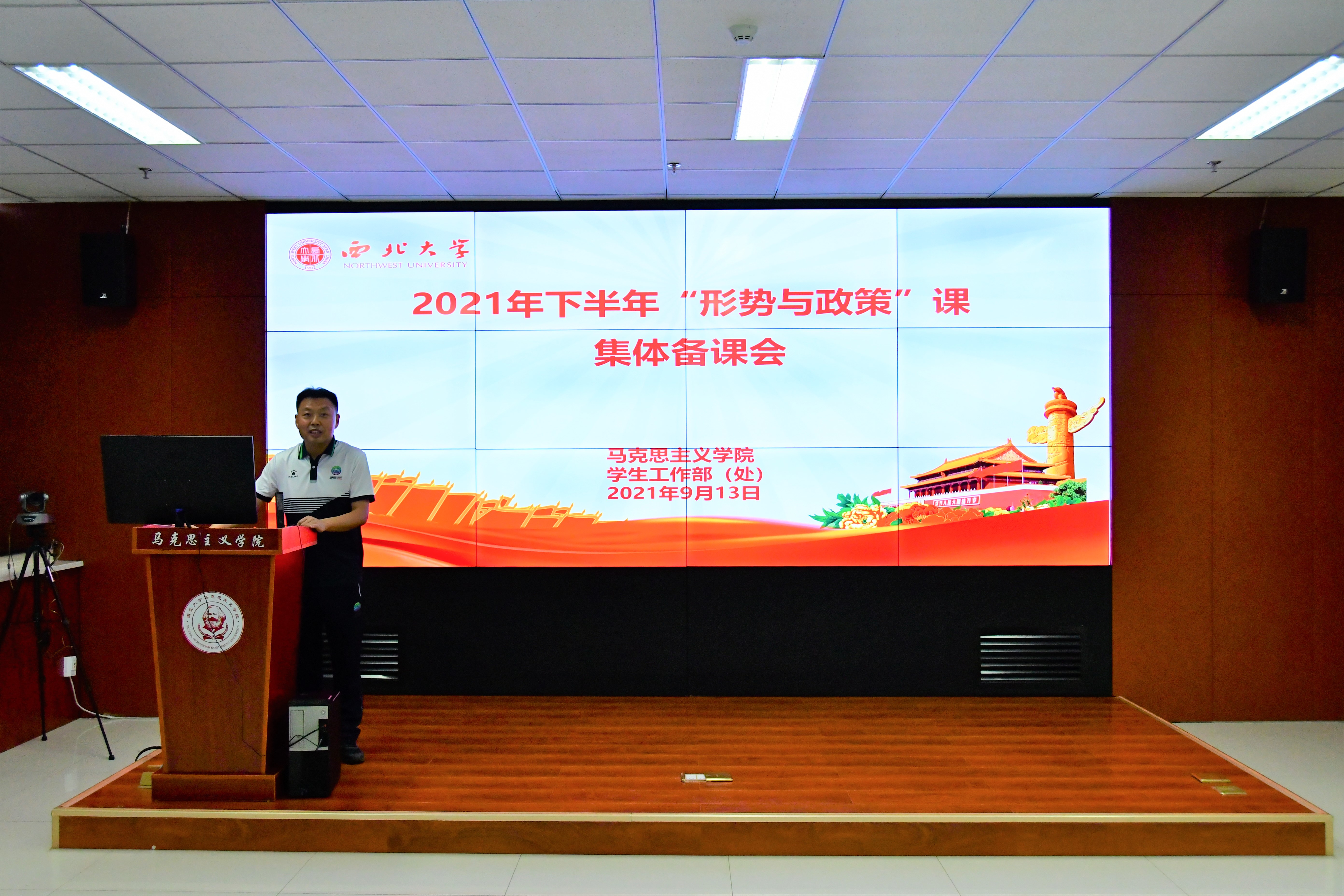 2021年9月13日下午,在马克思主义学院1104会议室,我校召开了本学期形势与政策集体备课会。马克思主义学院教学副院长李志松主持了集体备课会。全校形势与政策专职任课教师、特聘思政教师和兼职任课教师80多位参加了集体备课会。