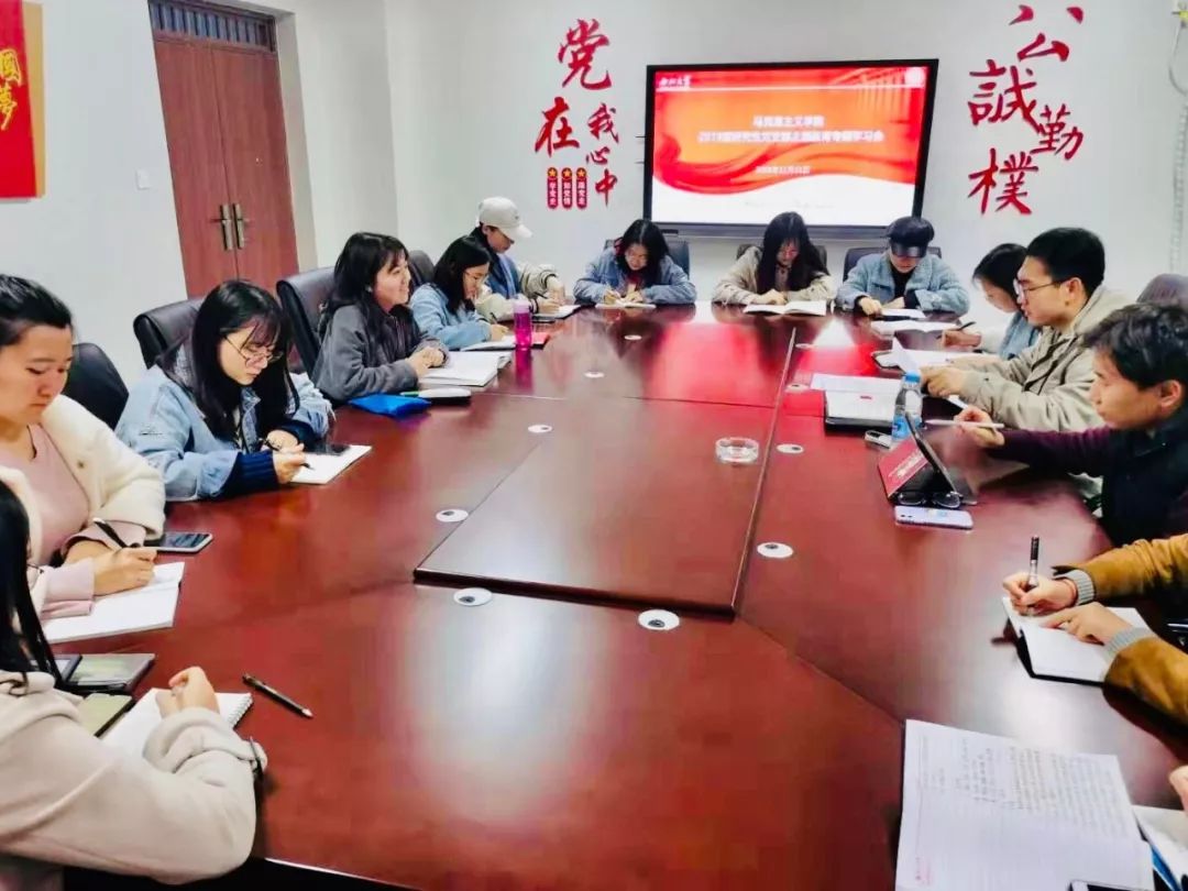 根据“不忘初心、牢记使命”主题教育领导小组印发的《关于开展第二批“不忘初心、牢记使命”主题教育的指导意见》,为落实校党委《西北大学关于“不忘初心、牢记使命”主题教育的实施方案》和马克思主义学院党委《“不忘初心、牢记使命”主题教育工作方案》的安排,我院2019级研究生党支部于11月21日晚,在西学楼1201党建活动室开展了“对党说句心里话”主题党日,并进行了主题教育专题学习会。会议由支部书记赵凯凯同志主持,支部全体党员、预备党员、入党积极分子和2019级共青团员代表参加了此次会议。
