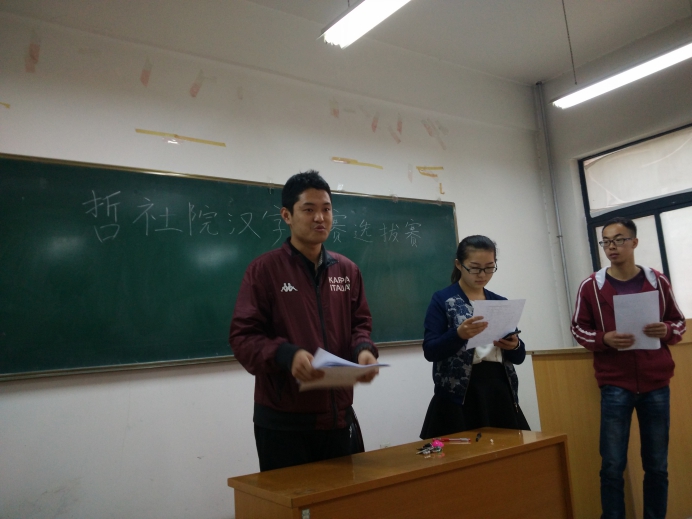 2016年3月31日晚,西北大学哲学与社会学学院响应校研会的号召,于5206教室召开哲社院汉字大赛的选拔赛。出席本次选拔赛的有研会主席王博和副主席马梦洁。本次选拔赛吸引了哲社院广大同学们的关注,并有10位同学积极参加。