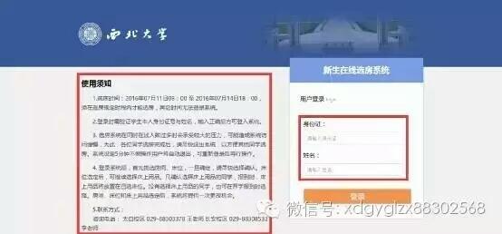 访问http://ihome.nwu.edu.cn/zzxc/ 进入选床登录界面,仔细阅读左侧使用须知,输入新生的身份证号和姓名登录进入选床界面(谷歌、360、搜狗、QQ浏览器都可以,必须是急速模式)