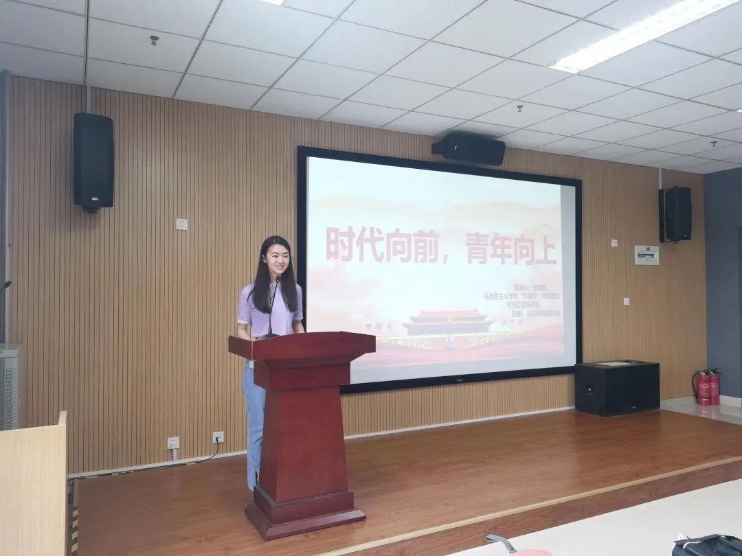 2022年5月25日,马克思主义学院“红桅杆”思政理论学习社团在艺术学院开展理论宣讲。本次活动的主讲人为:2021级马克思主义基本原理专业硕士研究生张依芳和2021级思想政治教育专业硕士研究生刘素琪。