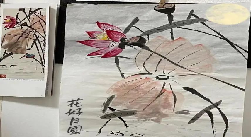 浓厚的思乡之情、诚挚的祝福之语都化作一撇一捺跃然纸上。但愿人长久,千里共婵娟。以同学们的书画为桥,哪怕相隔天涯之远,这份情也让我们的心紧紧相连。