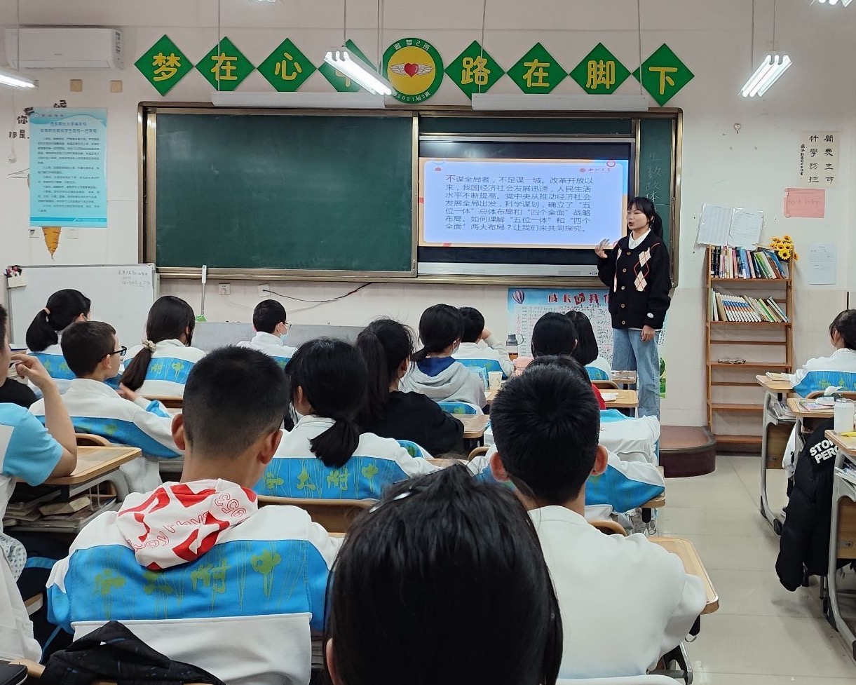 4月25日,我院“红桅杆”思政理论学习社团在长安区西北大学附属初级中学开展“思政宣讲进课堂” 。社团成员以《习近平新时代中国特色社会主义思想学生读本》为主要内容,在七年级的两个班级中进行了思政宣讲。本次主讲人是来自21级中国近现代史基本问题研究专业的硕士研究生黄文馨和22级马克思主义中国化专业的硕士研究生刘天霖。