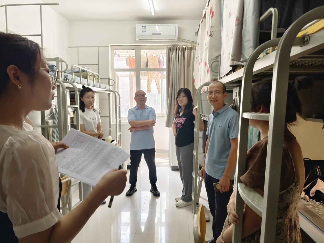 8月30日上午,学院党委书记韩凯峰、院长何博、党委副书记邵平及辅导员刘娟一行来到学生公寓看望我院2023级新生。