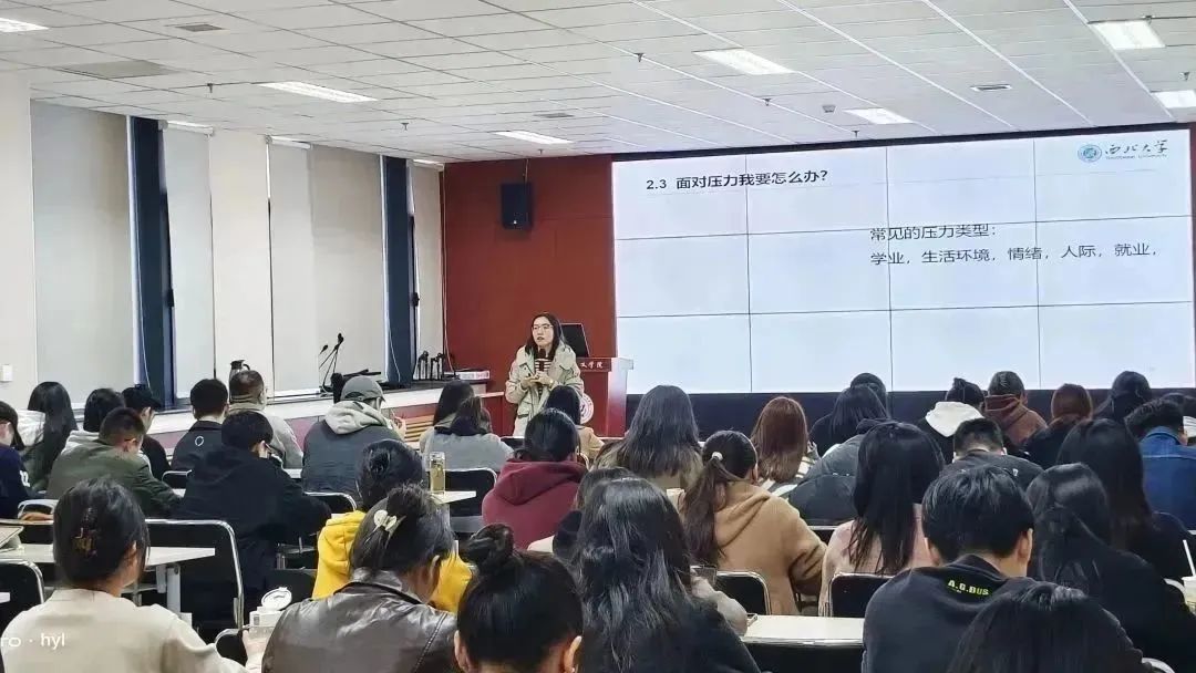 11月8日下午,我院举办《拥抱我的大学生活》主题讲座,讲座在西学楼1104报告厅举行,主讲人为校心理中心杨婉晨老师。我院心理专干刘娟以及全体2023级硕士研究生参加本次讲座。