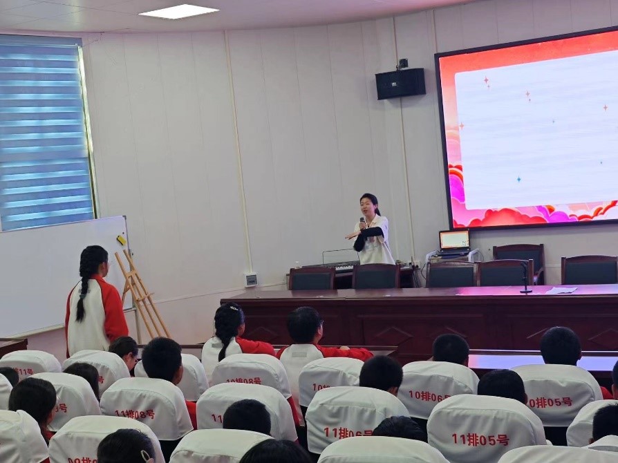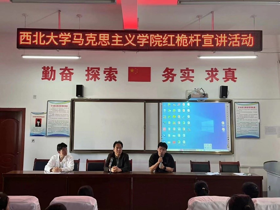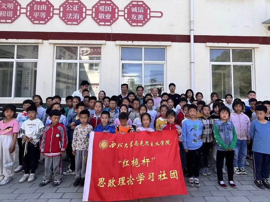 活动第二阶段,全体成员前往咸阳市泾阳县王桥镇西街小学和泾阳县王桥镇中学参观交流,红桅杆思政理论学习社团成员2022级马克思主义中国化研究专业的硕士研究生刘天霖和崔艳文、2023级思想政治教育专业以及中国近现代史基本问题研究专业的硕士研究生岳政远、邓喆开展思政宣讲进课堂,为推进大中小思政课一体化建设贡献青春力量。