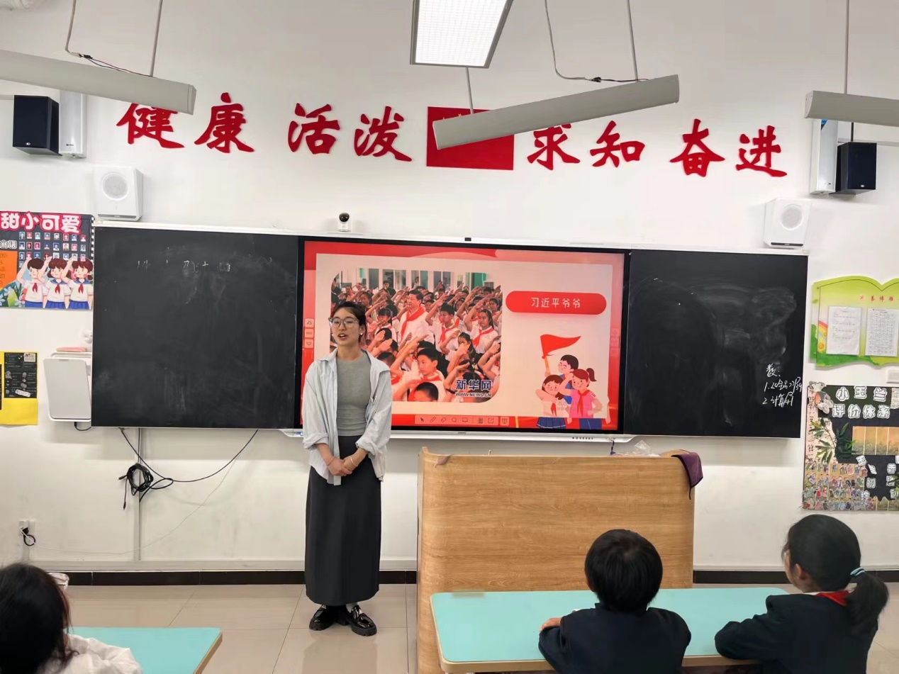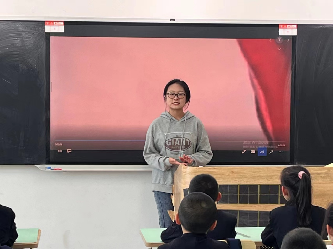 燕卉雅以《光荣的少先队》为题,通过视频导入,带领同学们学习优秀少先队员们的先进事迹,激励同学们立志为强国建设、民族复兴而读书,不负党和人民的殷切期望。
