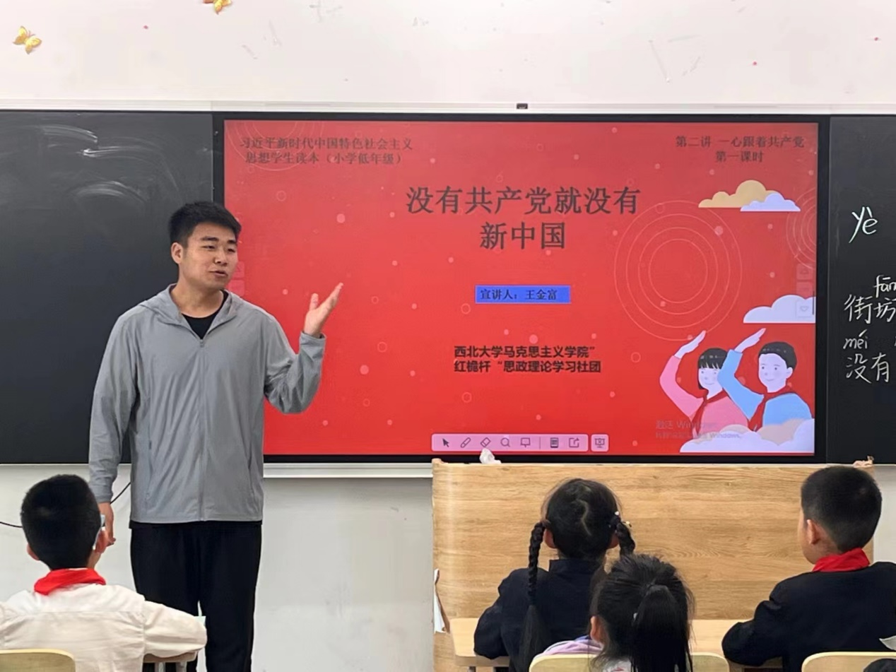 我院红桅杆思政理论学习社团在西安市长安区西北大学附属小学开展思政宣讲进课堂