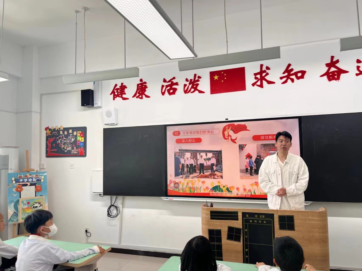 5月6日,我院红桅杆思政理论学习社团在西安市长安区西北大学附属小学,以《习近平新时代中国特色社会主义思想学生读本》(小学低年级)为主要内容,为二年级的小学生讲授思政课。主讲人分别是来自2022级和2023级的马克思主义中国化研究、思想政治教育与中国近现代史基本问题研究专业的12位硕士研究生。