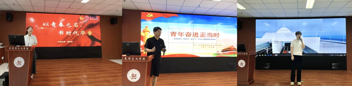 随后,长安大学长安星火宣讲团的闵梦婷和必赢242net官网红桅杆思政理论学习社团的刘天霖和田丰三位同学围绕不同的主题进行了精彩的宣讲。闵梦婷以《以青春之名,书时代华章》为题,讲述了革命先烈恽代英同志的青年时代的故事,倡导同学们学习恽代英同志的工作热情、坚强意志和朴素作风,为实现中华民族伟大复兴奋勇前进。刘天霖以《青年奋进正当时》为题,介绍了青年人的责任和担当,以陈延年和陈祥榕两位青年楷模为例,勉励同学们在各自的岗位上发光发热,创造成绩。田丰以《弘扬中华民族斗争精神》为题,结合我们的所学的历史知识,讲述了一代又一代中华儿女在敢于斗争、善于斗争的伟大实践中努力拼搏,推动中华民族越来越接近伟大复兴的目标。