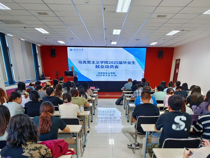 韩凯峰对2025届全体毕业生作了就业动员讲话。他指出,毕业生们要正确认识当前就业形势的严峻复杂性,切实树立正确的就业观。他对学院就业工作提出了四点要求:一是学院要系统抓好就业。把就业工作作为年度重点工作,不断健全全员促就业工作格局,着力形成有效激励约束长效机制,切实抓好就业工作。二是学院要持续推进人才培养模式改革。大力实施硕士研究生“1+5”人才培养质量提升工程,“1”即马克思主义经典文献考核,“5”涵盖1篇高质量期刊学术论文、1篇高质量报刊理论文章、1项高水平科学研究项目、1门思政课教学基本素养、1次基层党建实务经历。三是毕业生要争取早日就业。要端正就业思想,既要有高远追求,又要脚踏实地,苦练内功,不断提升专业能力和就业技巧,把握机会实现高质量充分就业。四是要强化马院人命运共同体意识。学生从进入马院那一刻起,就深深烙上了马院人的印记,学生的成长成才就与马院的建设发展紧紧联系在一起。学院始终坚持“以生为本”人才培养理念,不断形成乐教爱生、精心育人的良好环境。学生就业率关乎学院办学质量和社会声誉,要着力形成学生积极就业、学院促就业的良好就业氛围。