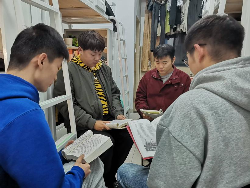 608宿舍集体阅读和学习了《中国共产党的一百年》。他们深刻地体悟到中国共产党的百年历史,是一部不懈奋斗史、思想探索史、自身建设史。他们也深刻认识到新时代的青年应该树立正确的马克思主义历史观,坚定理想信念,脚踏实地,有骨气、有志气、有节气,积极投身于实现中华民族伟大复兴的实践中去,以实际行动践行初心使命。