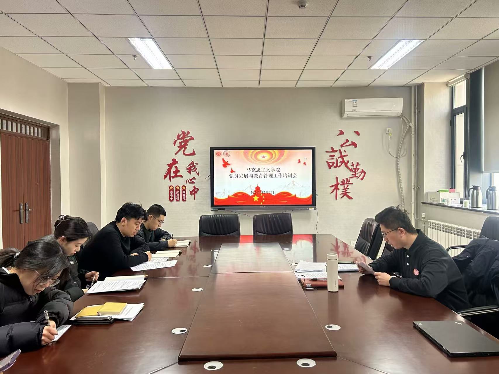 12月27日上午,我院在党建活动室召开党员发展与教育管理工作培训会。会议由我院党务秘书刘通主持,我院学生党支部书记、党务组组长参加。
