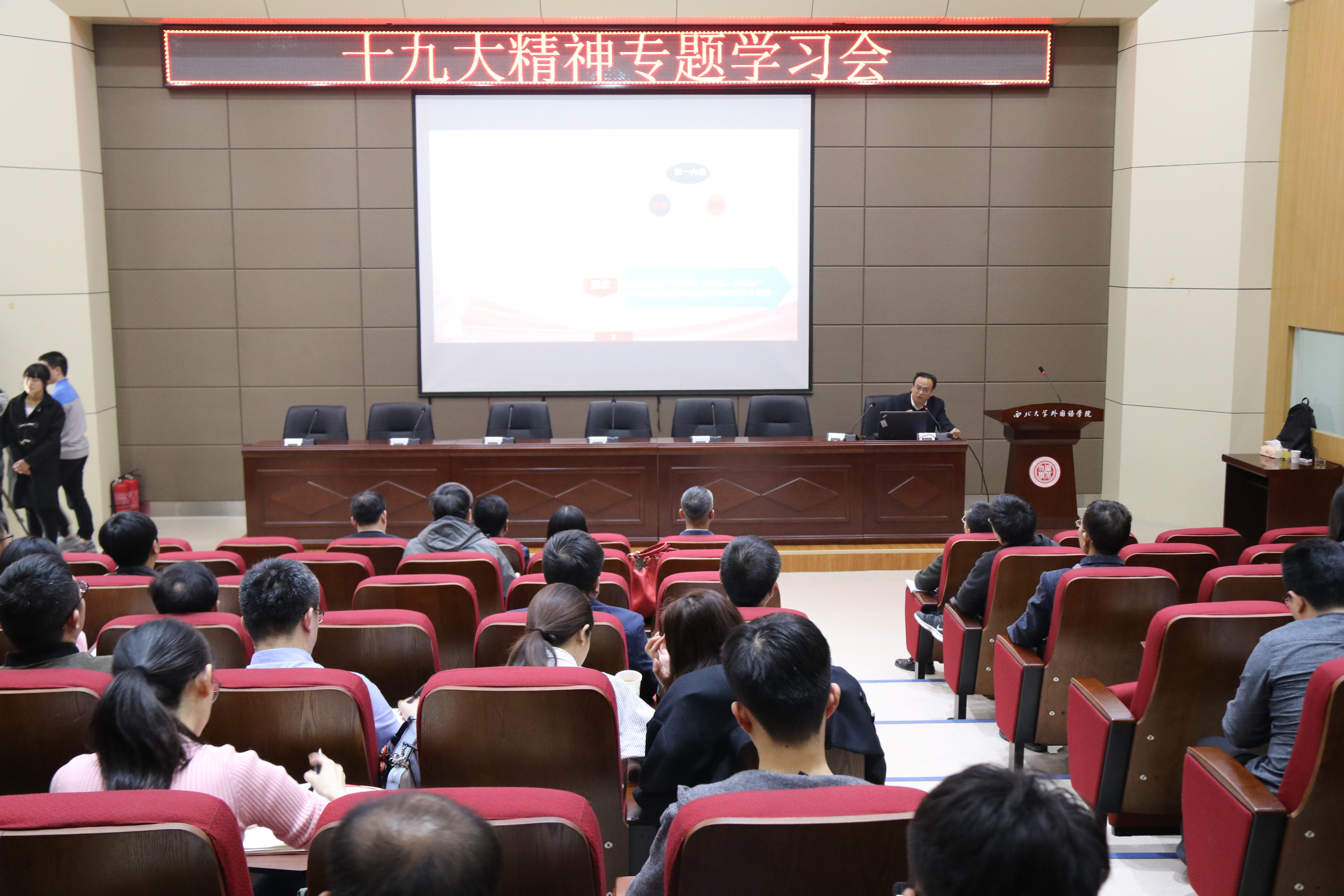 1024日下午,马克思主义学院、学生工作部联合举办了十九大精神专题学习会,马院党政领导班子全体教师、学生工作部部长以及各院系学生辅导员近130人参加并聆听了报告。