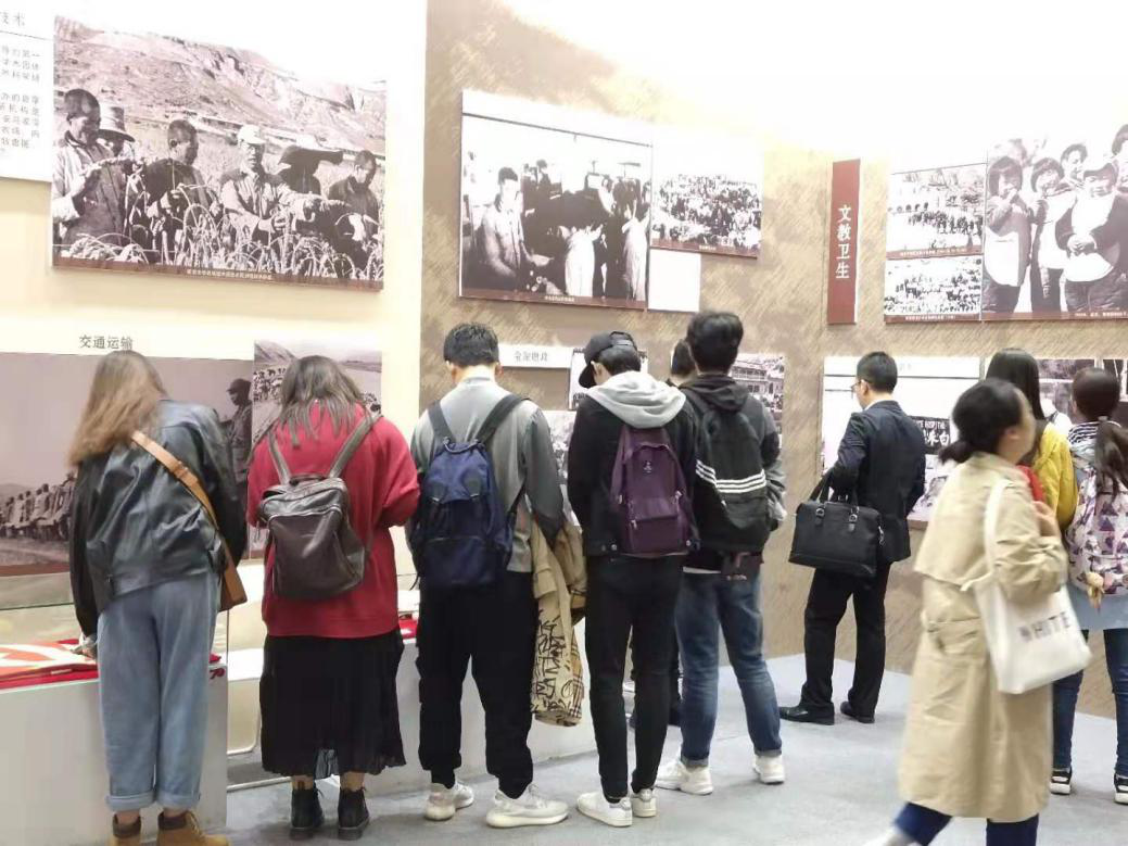 2019年10月14日,我校2018级40名本科生在马克思主义学院赵沛副教授的带领下,赴曲江国际会展中心参观了“辉煌壮丽七十年 追赶超越再出发——陕西省庆祝中华人民共和国成立70周年成就展”,并在展馆内公开讲授了一节题为“探索 变迁 自信”的思政课。