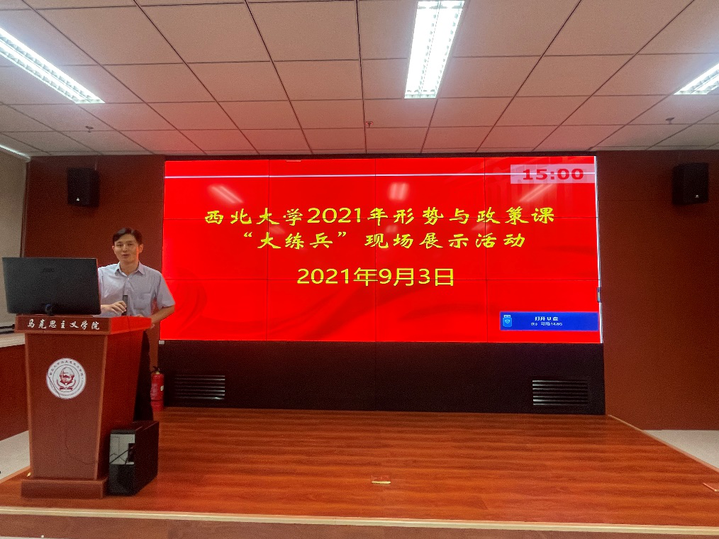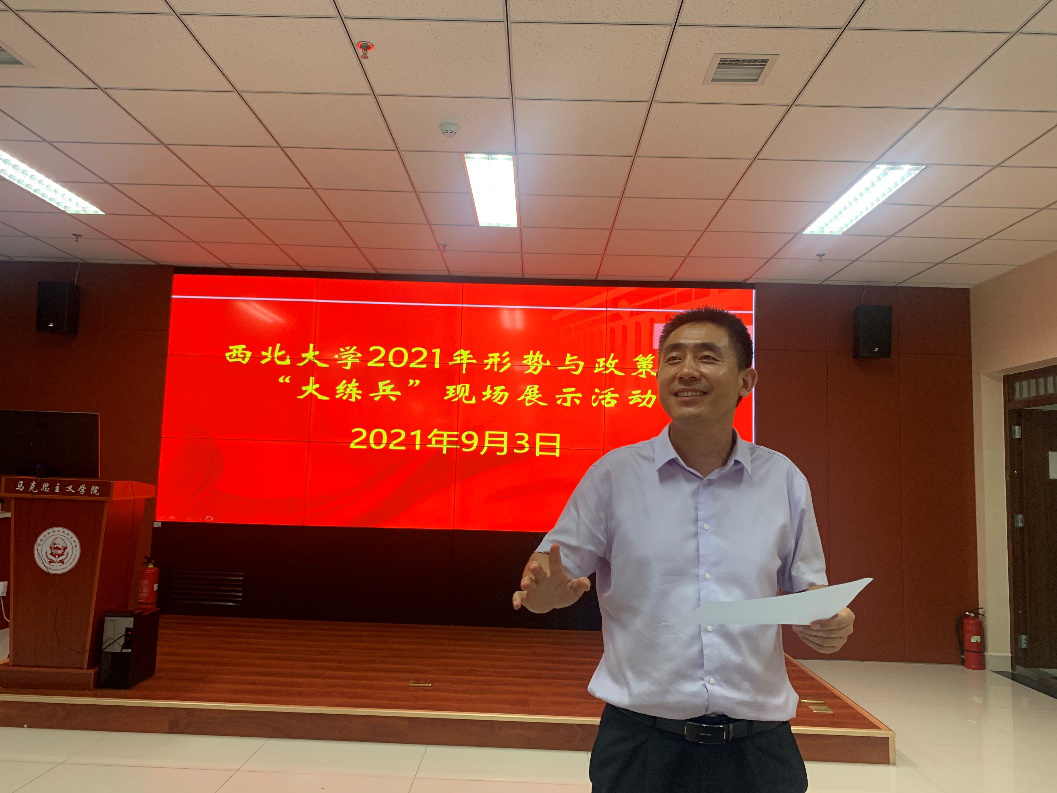 我院于9月3日下午在西学楼学院报告厅和会议室举办了2021年西北大学形势与政策课“大练兵”现场展示活动,各个学院的辅导员参加了本次活动。本次活动评委由西安交通大学马克思主义学院院长燕连福教授、西北工业大学马克思主义学院院长杨云霞教授、长安大学马克思主义学院院长陈怀平教授、西安科技大学马克思主义学院院长高振岗教授、我校学工部部长董国强、校团委书记寇嘉和我院苟昭赟、赵沛、曹建军、齐钊等老师担任本次展示活动的评委,我院教学副院长李志松负责主持本次活动。