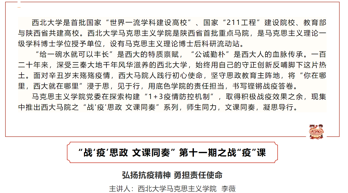 上一条:“形势与政策”教研部举行集体备课会 下一条:西大马院:战疫思政 文课同奏 第十期