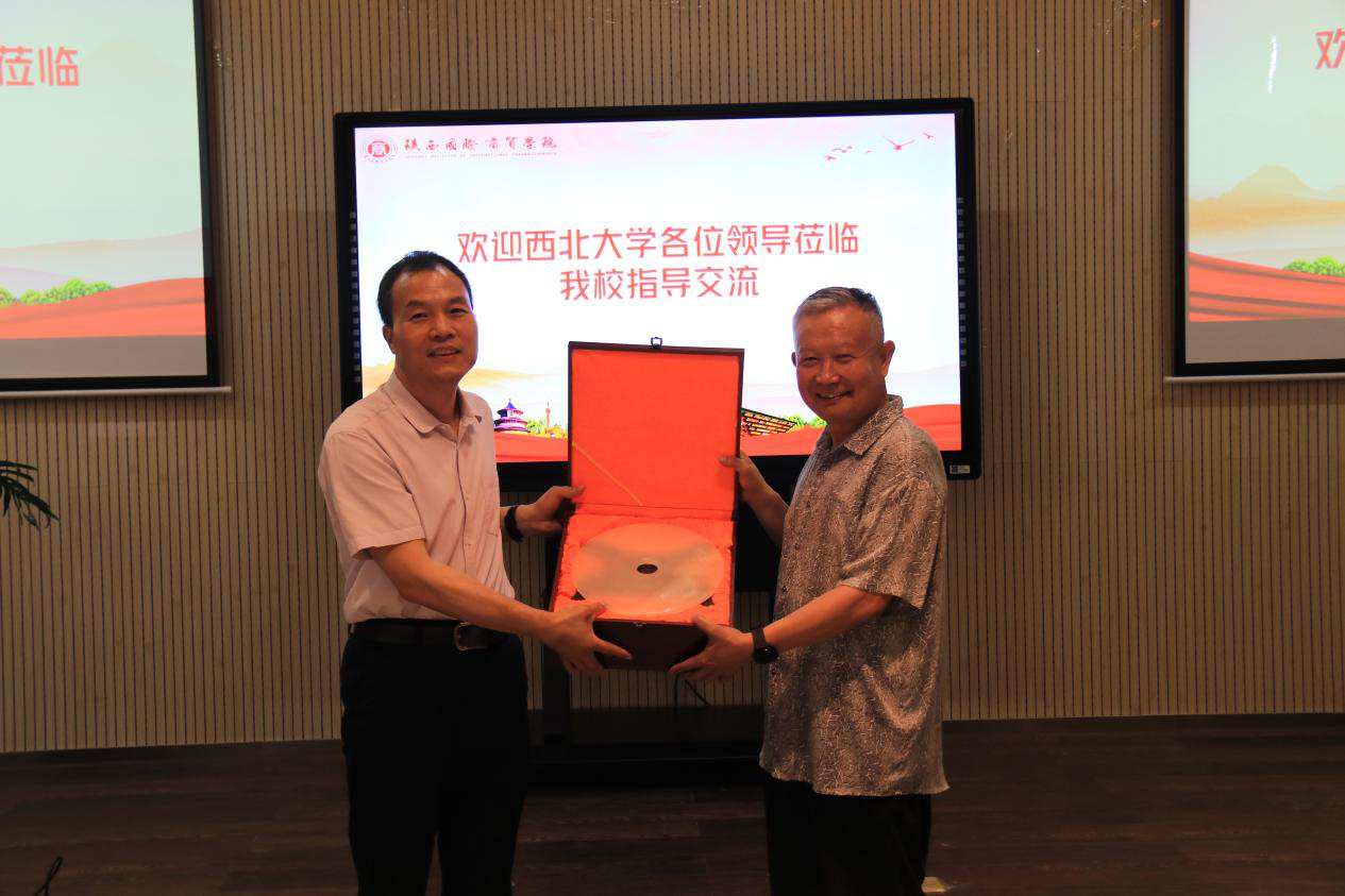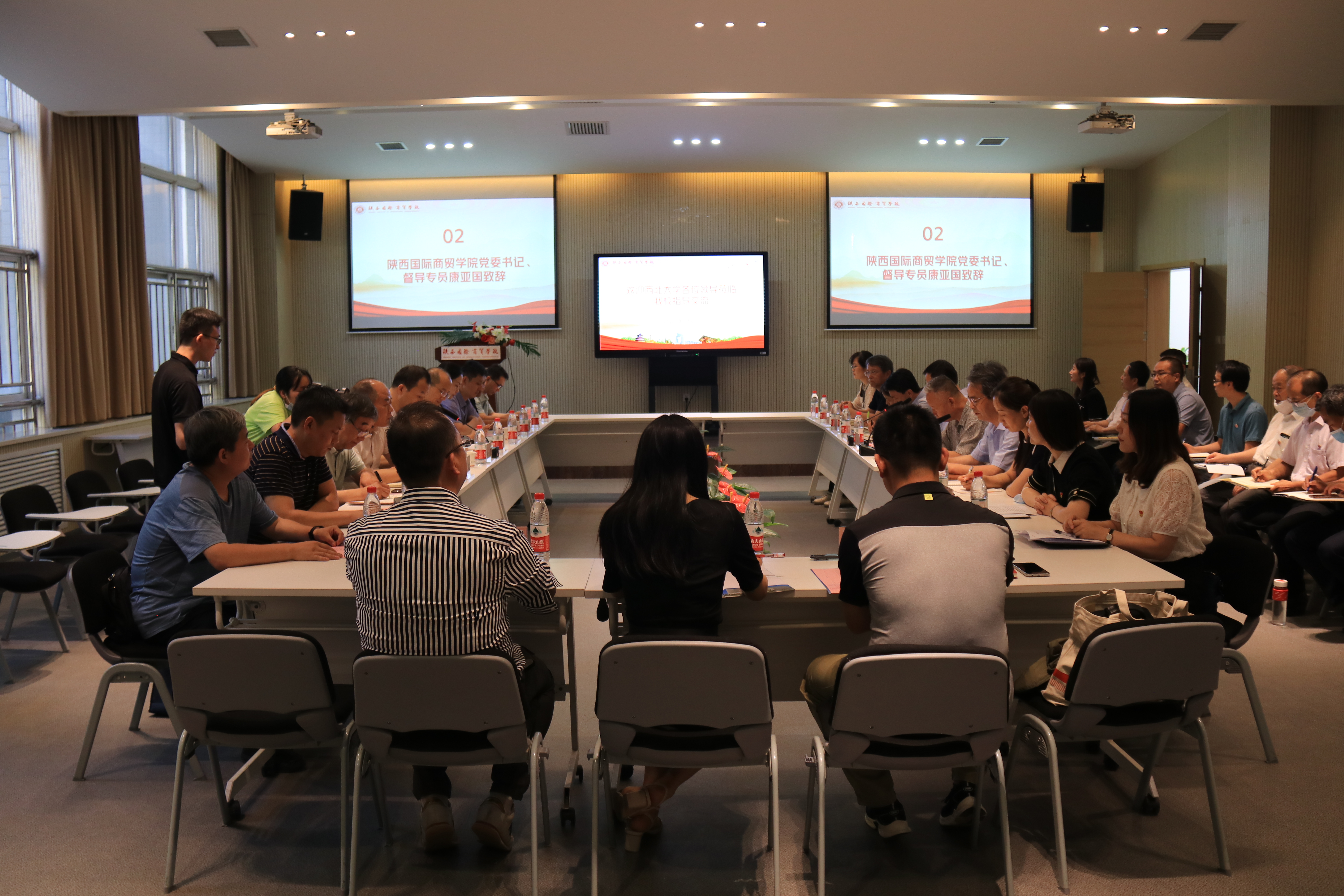 在随后举办的座谈会上,康亚国对吕建荣一行的到来表示热烈的欢迎,并介绍了陕西国际商贸学院的历史和近几年发展的基本情况,同时代表学校对我院给予的支持帮扶表示感谢。