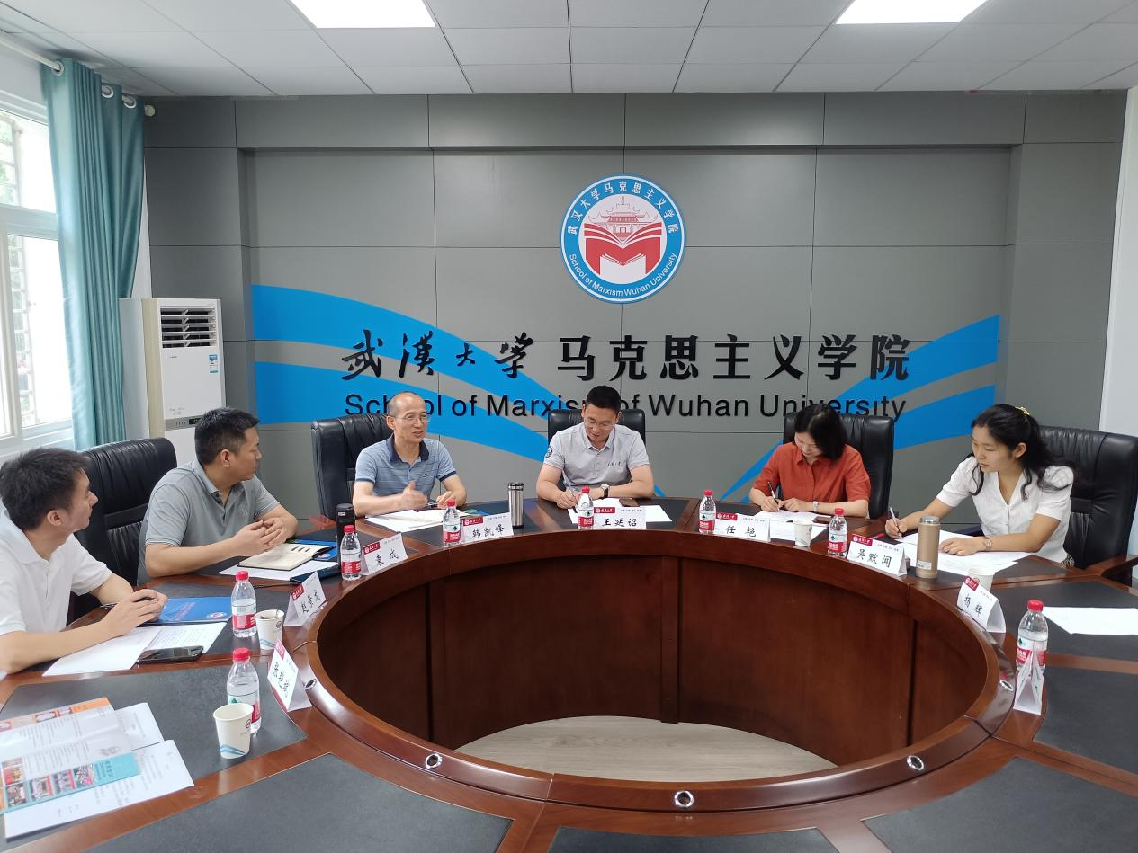当日上午,我院在武汉大学马克思主义学院进行座谈交流。武汉大学马克思主义学院党委副书记王延诏、“习近平新时代中国特色社会主义思想概论”课程教学研究中心主任任艳、“马克思主义基本原理”课程教学研究中心副主任吴默闻、党政办主任杨辉、我院正在访学的教师赵景龙等参加座谈会。双方围绕学院党建、意识形态、思政课教学、师资队伍建设、毕业生选聘等工作进行了深入交流。